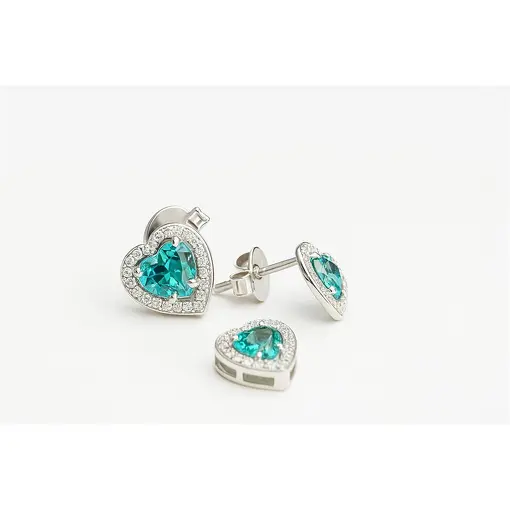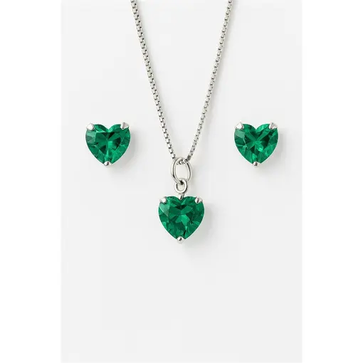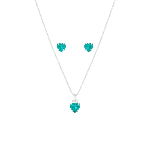 CONJUNTO DE PRATA CORAÇÃO COR ESMERALDA