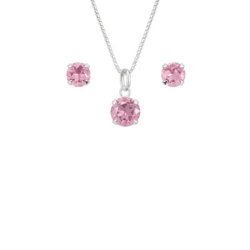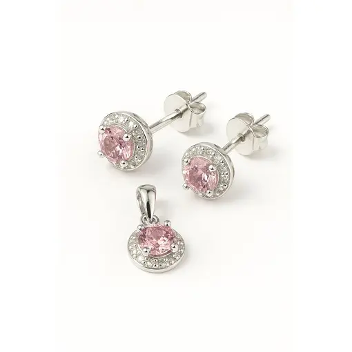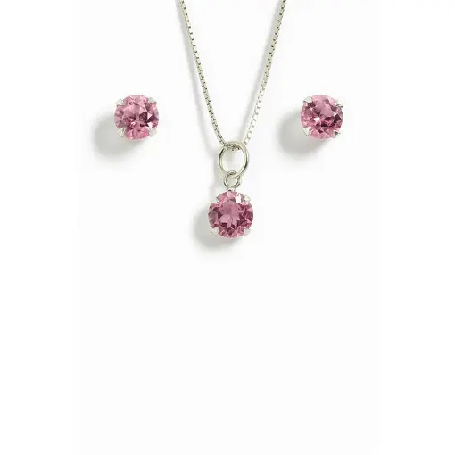 CONJUNTO DE PRATA PONTO DE LUZ ROSA
