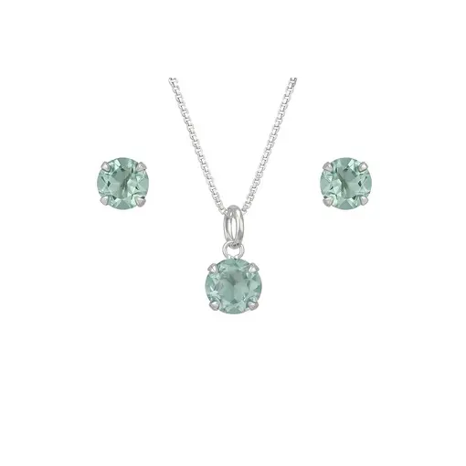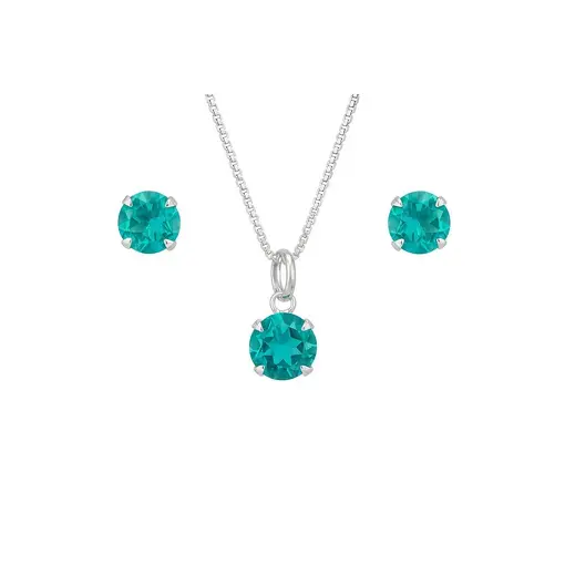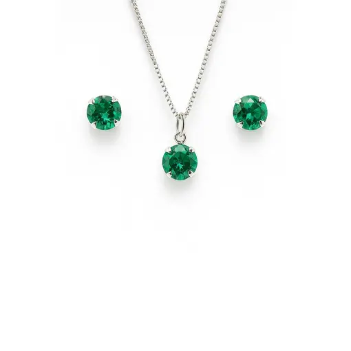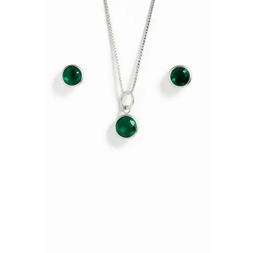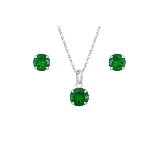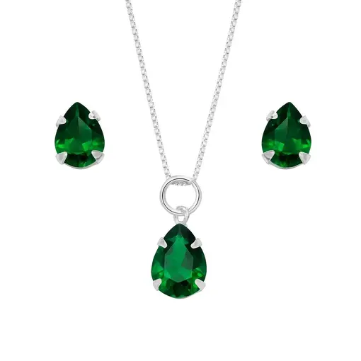 CONJUNTO DE PRATA PONTO DE LUZ COM ZIRCÔNIA VERDE