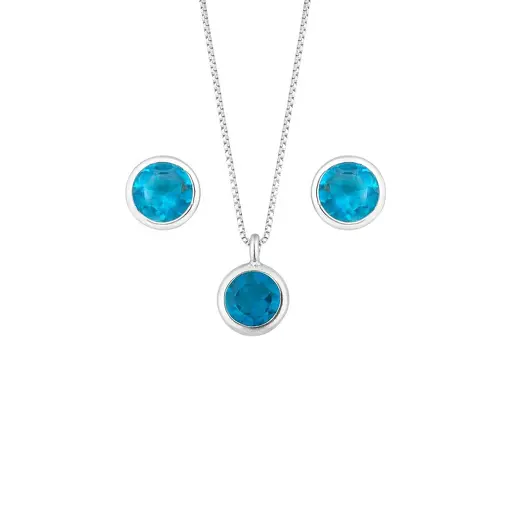 CONJ 255 PRATA GOTA AZUL COM ZIRCÔNIAS