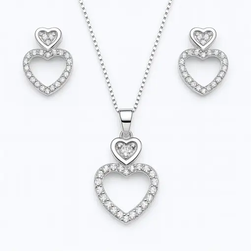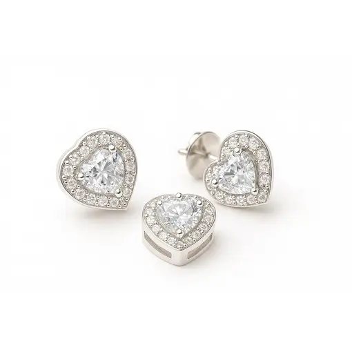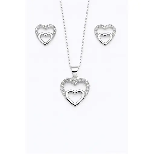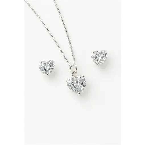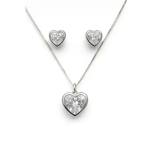 CONJUNTO DE PRATA CORAÇÃO COM ZIRCÔNIA