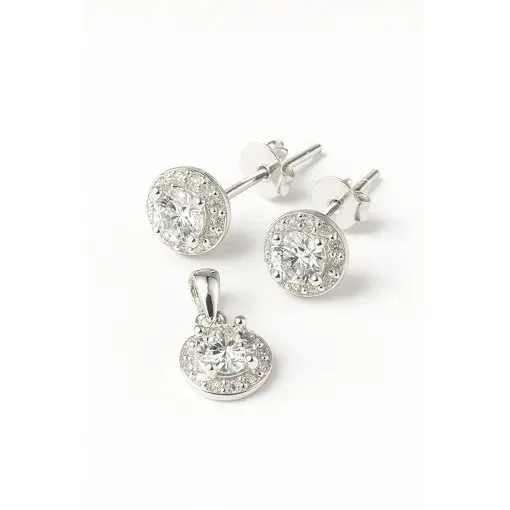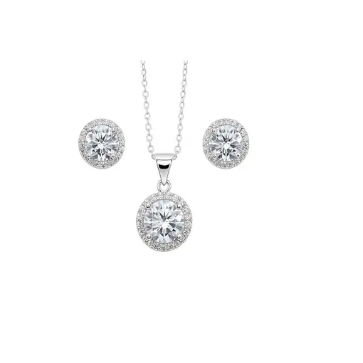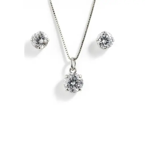 CONJUNTO PRATA REDONDO CRAVADO