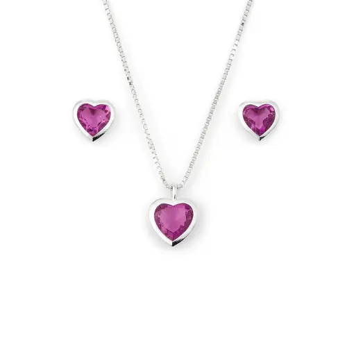CONJUNTO DE PRATA CORAÇÃO COM ZIRCÔNIA TURMALINA